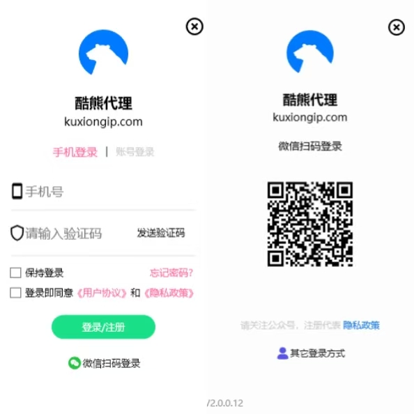 1:打开酷熊加速软件,使用手机注册并登录酷熊加速,也可以使用微信注册和账号密码登录