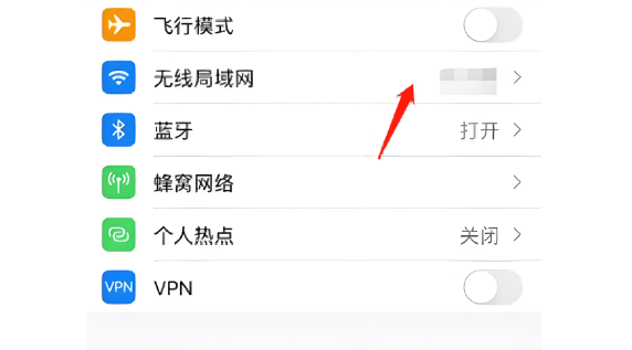 - 打开 设置 > 无线局域网,找到当前连接的Wi-Fi网络,点右边蓝色的 “i” 图标。