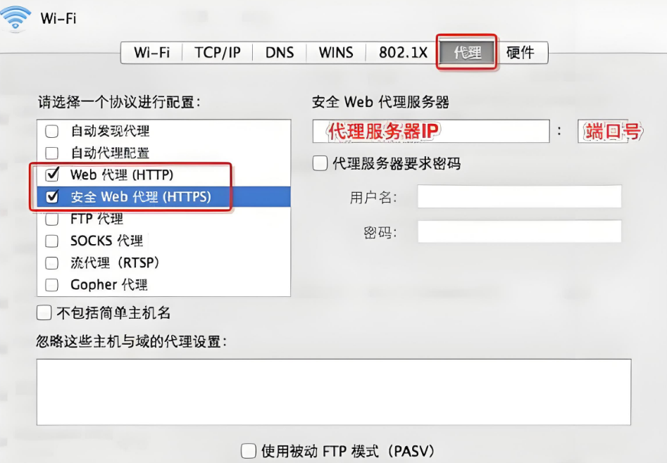 - 根据你的代理协议类型(如HTTP、HTTPS或SOCKS),勾选对应选项,然后填写 代理服务器地址和端口。