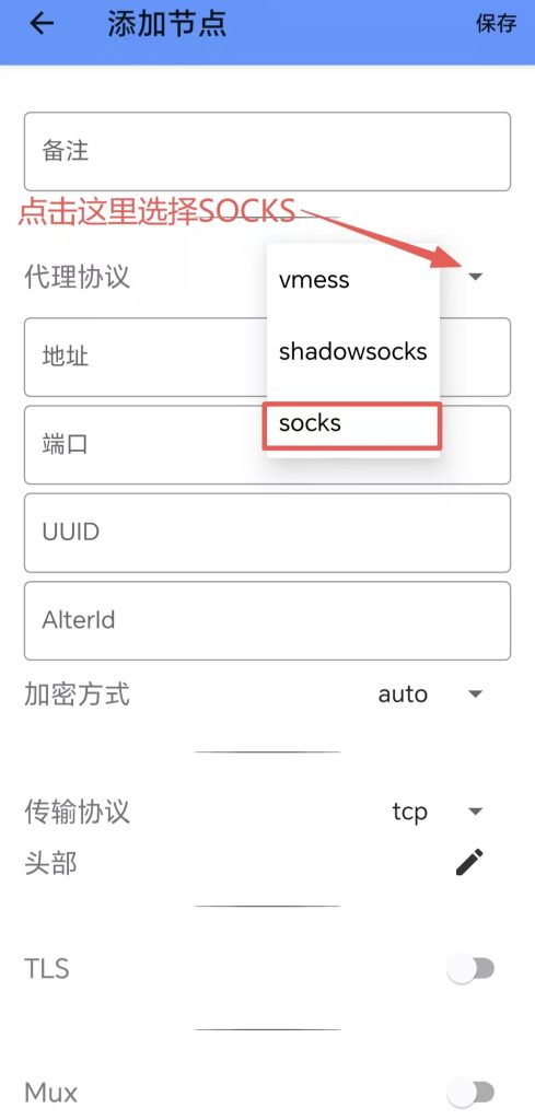 5:添加对应的地址,端口,用户名,密码,点击右上角保存
